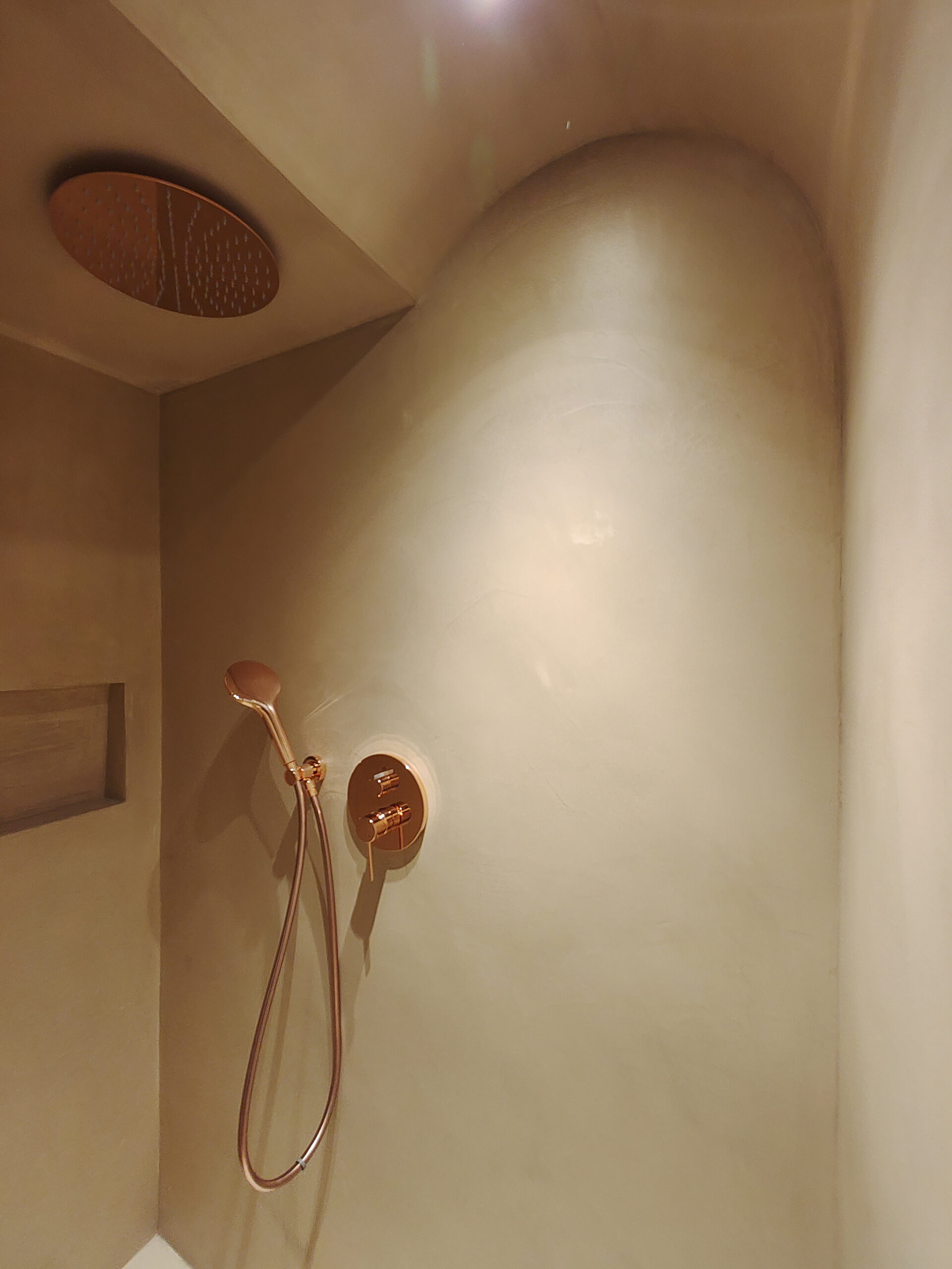 Pintura a la Cal Texturada: Aplicamos esta técnica tradicional en las paredes, aportando profundidad y carácter al espacio. La textura sutil crea un juego de luz y sombra que cambia a lo largo del día, dotando al ático de una atmósfera viva y dinámica.
