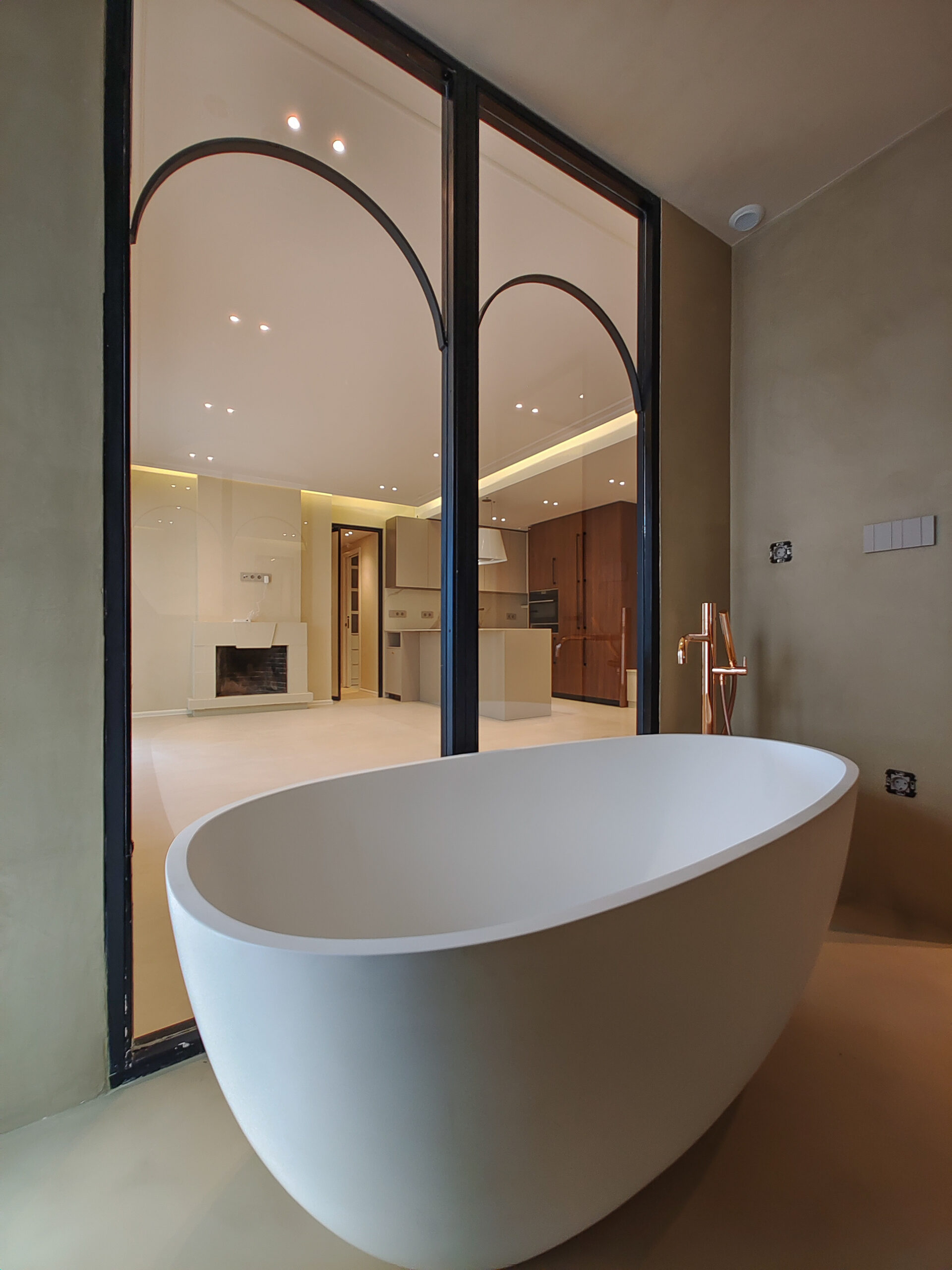 Formas Suaves: Incorporamos líneas curvas y contornos redondeados en el mobiliario y la arquitectura interior, creando un ambiente relajante y armonioso. Estas formas orgánicas contrastan elegantemente con la estructura angular del ático, añadiendo un toque de suavidad al espacio.