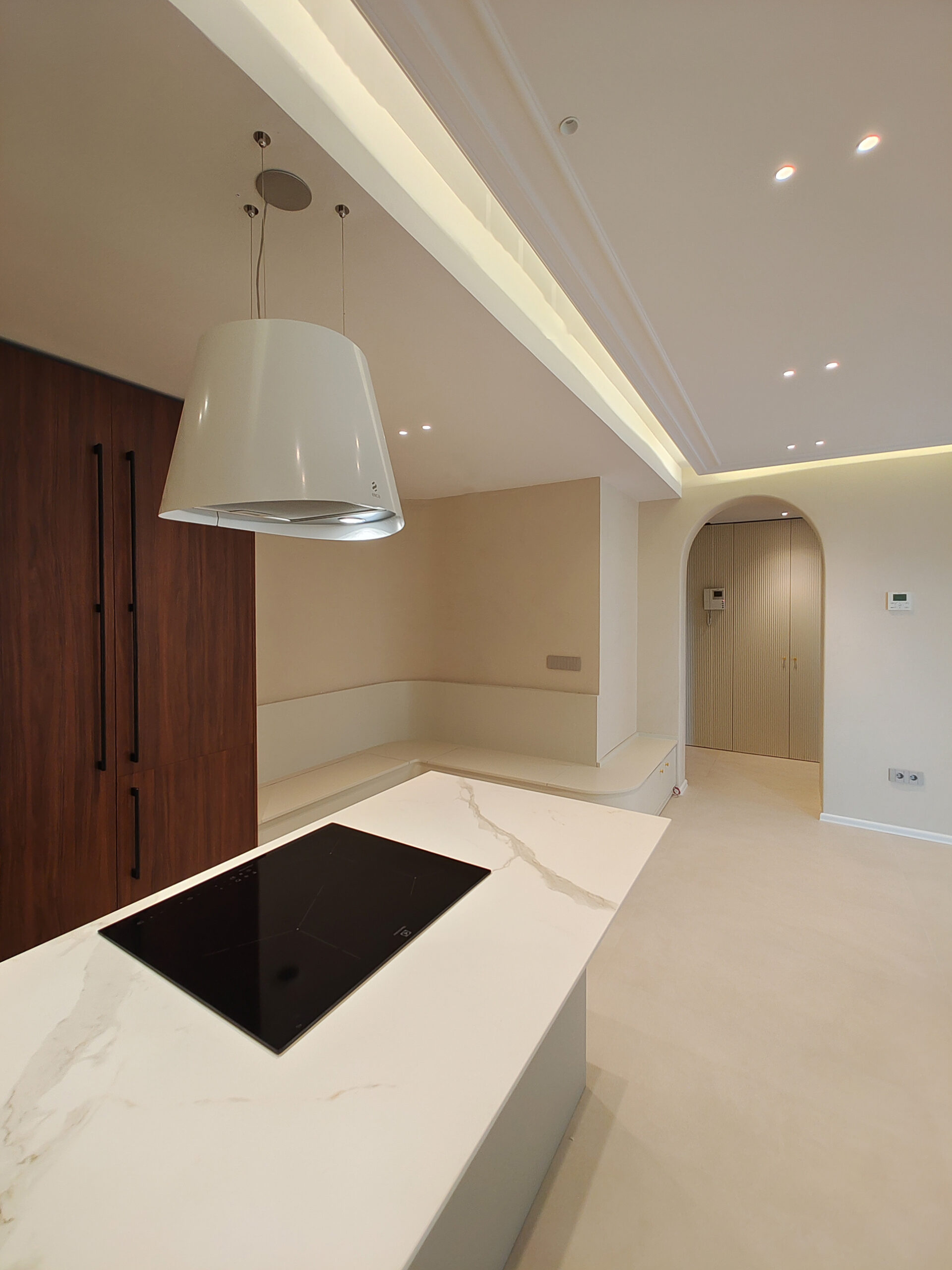 En ETNA STUDIO, estudio de interiorismo en Barcelona, hemos creado un espacio único y acogedor para una pareja joven en un ático del Eixample[1]. Nuestro enfoque se centra en un diseño contemporáneo con formas suaves y materiales naturales, perfectamente adaptado al estilo de vida moderno y dinámico de nuestros clientes.