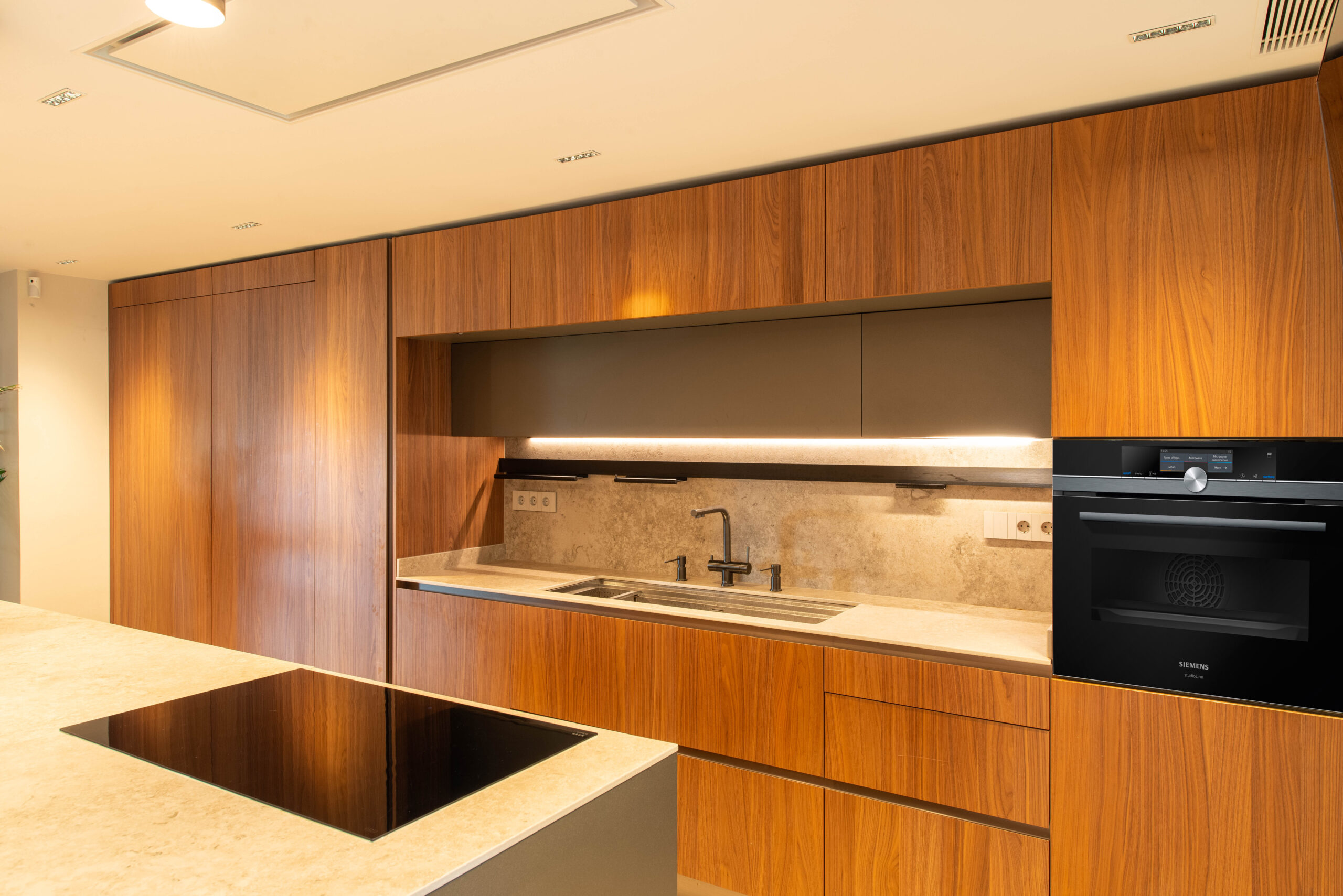Las cocinas ARMONY CUCINE encarnan la excelencia del diseño italiano: líneas limpias, funcionalidad ergonómica y una cuidada selección de materiales nobles. En este proyecto, la cocina semiabierta incorpora una gran isla central, concebida como punto de encuentro familiar, ideal tanto para cocinar como para compartir momentos cotidianos.